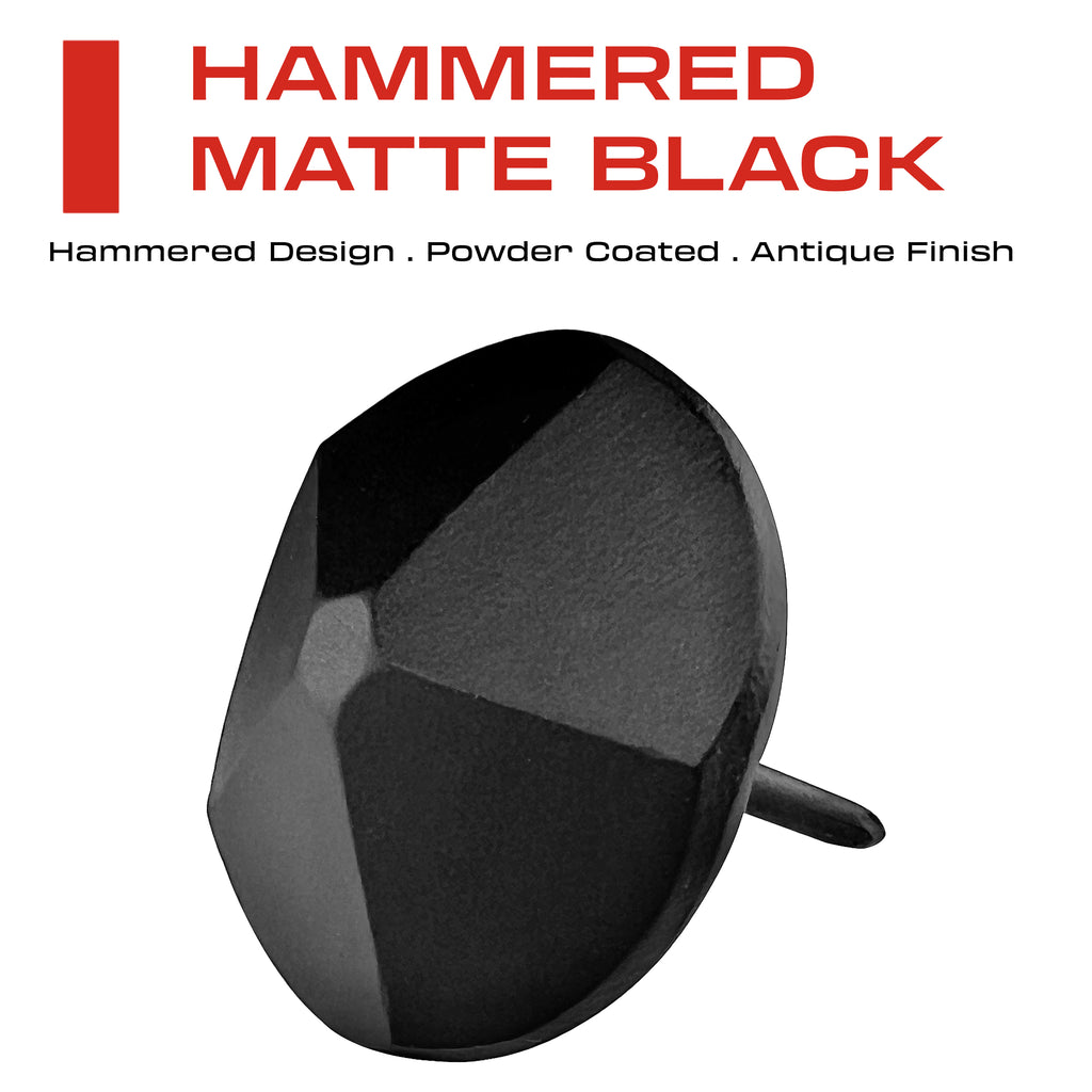Transform the appearance of doors, gates, furniture, and cabinets with Sidco Supply’s beautifully crafted 1.25” Hammered Pyramid Matte Black decorative clavos nails. Meticulously designed to emulate an age-old charm, these clavos are a perfect blend of aesthetics and functionality, creating an eye-catching focal point. Our hammered antique vintage rustic clavo nails are a perfect addition to elevate the visual appeal of your furniture, doors, cabinets, or any woodworking or DIY project. Made from high-quality iron steel, these hammered clavo nails boast exceptional durability and strength, guaranteeing their longevity in any application. The hammered surface showcases a vintage, weathered look that adds a touch of old-world charm and sophistication to your project.