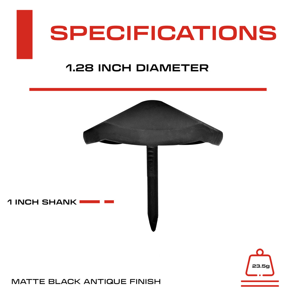 Specifications: Hammered Pyramid Matte Black Clavo Nails 1.25” Inch x 1.25” Inch x 1 Inch (31.75 mm x 31.75 mm x 38.1), Weight .81oz, 23g. Durable, rust and corrosion resistant, great for both indoor and outdoor applications.