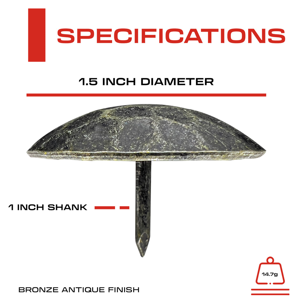 Transform the appearance of doors, gates, furniture, and cabinets with Sidco Supply’s beautifully crafted 1.5” Hammered Black and Bronze decorative clavos nails. Meticulously designed to emulate an age-old charm, these clavos are a perfect blend of aesthetics and functionality, creating an eye-catching focal point. Our hammered antique vintage rustic clavo nails are a perfect addition to elevate the visual appeal of your furniture, doors, cabinets, or any woodworking or DIY project. Made from high-quality iron steel, these hammered clavo nails boast exceptional durability and strength, guaranteeing their longevity in any application. The hammered surface showcases a vintage, weathered look that adds a touch of old-world charm and sophistication to your project.