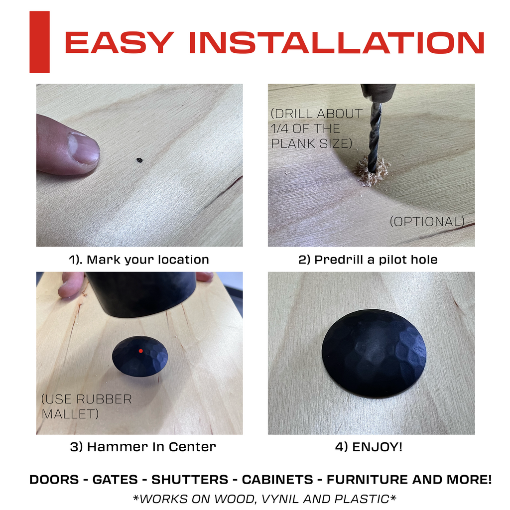 Easy Installation: Installing our clavo nails is a breeze. Simply position the clavo nail in the desired location and gently tap it in the center with a rubber tack hammer or rubber mallet until it's securely in place. The sturdy construction ensures a secure fit, making them perfect for both DIY enthusiasts and professional craftsmen.
