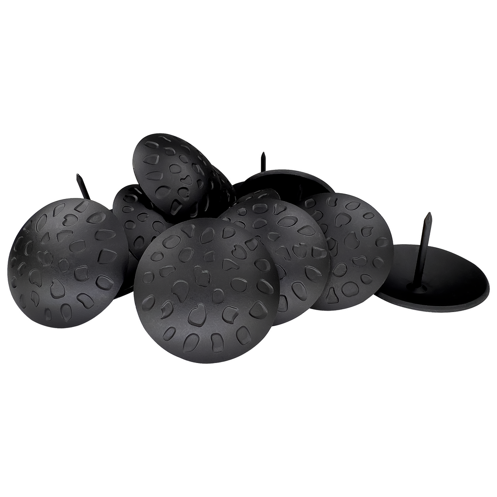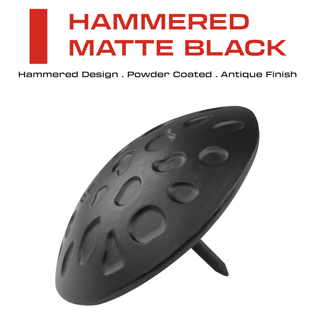 Transform the appearance of doors, gates, furniture, and cabinets with Sidco Supply’s beautifully crafted 1.5” Hammered Speckled Matte Black decorative clavos nails. Meticulously designed to emulate an age-old charm, these clavos are a perfect blend of aesthetics and functionality, creating an eye-catching focal point. Our hammered antique vintage rustic clavo nails are a perfect addition to elevate the visual appeal of your furniture, doors, cabinets, or any woodworking or DIY project. Made from high-quality iron steel, these hammered clavo nails boast exceptional durability and strength, guaranteeing their longevity in any application. The hammered surface showcases a vintage, weathered look that adds a touch of old-world charm and sophistication to your project.